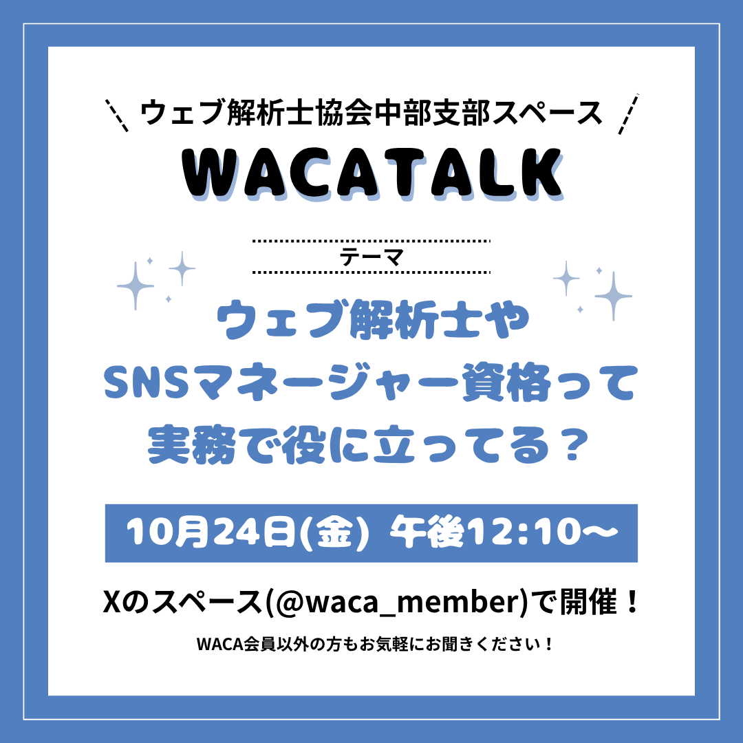 【WACA中部支部主催】WACA TALK 「ウェブ解析士やSNSマネージャーの資格って、実務で役に立ってる?」をXのスペースで開催しました(20251024)