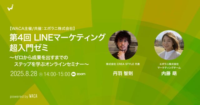 『PDCAを回して結果を出す! LINE公式アカウント集客・運用マニュアル』の著書・丹羽智則氏と、ミニアプリ領域を牽引するエボラニのマーケティング担当者が登壇。運用設計から友だち獲得、配信最適化、ミニアプリ活用、ROI算出などLINEでのマーケティングに関するさまざまな情報を、各回でテーマ別にお届けします。