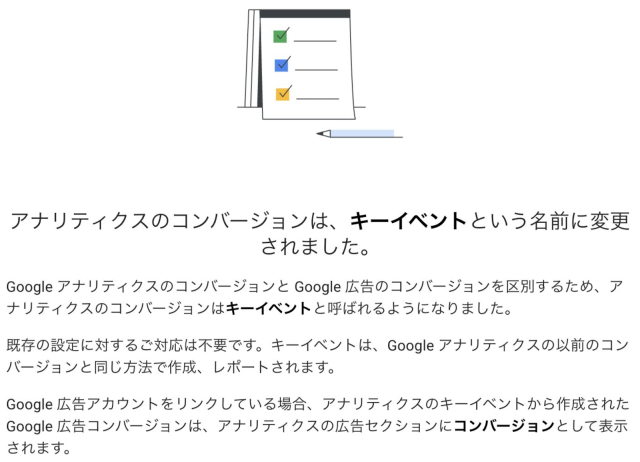 GA4におけるコンバージョンが、「キーイベント」という名称になりました。