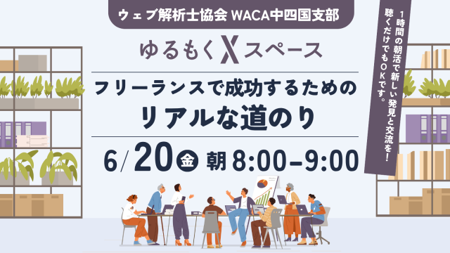 WACA中四国支部は2025年6月20日(金)午前8時〜9時に「ゆるもく」を開催いたしました。「フリーランスで成功するためのリアルな道のり」をテーマに、メンバーそれぞれの実体験に基づいたノウハウを共有しました。