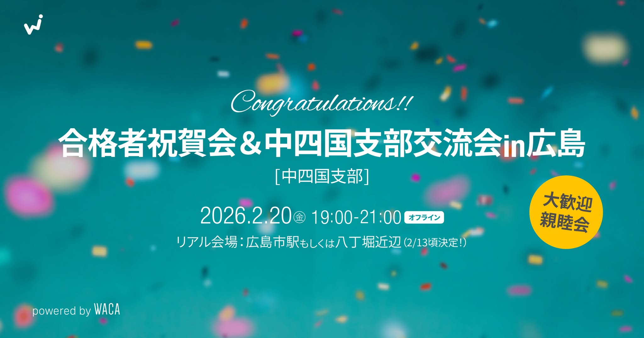 WACA中四国支部から、合格お祝い会のお知らせです。
