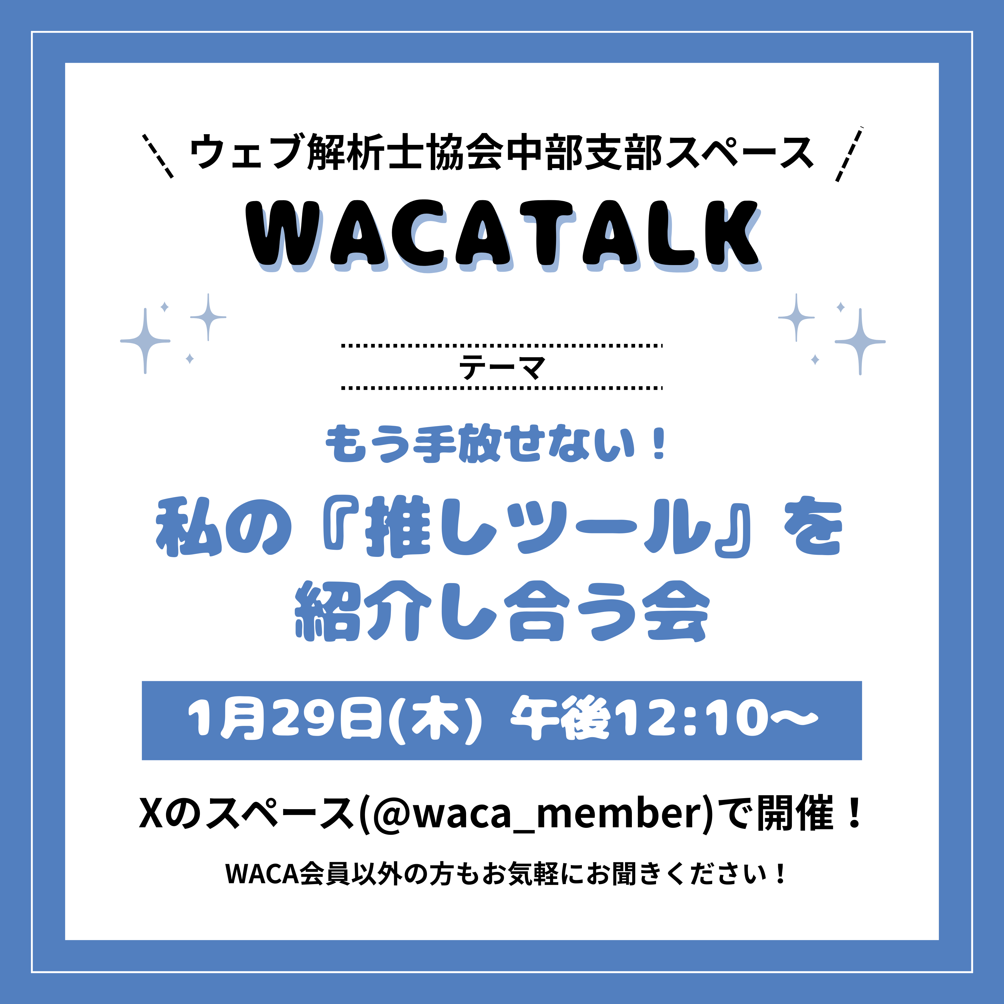 【WACA中部支部主催】WACA TALK 「もう手放せない!私の『推しツール』を紹介し合う会」をXのスペースで開催しました(20260129)
