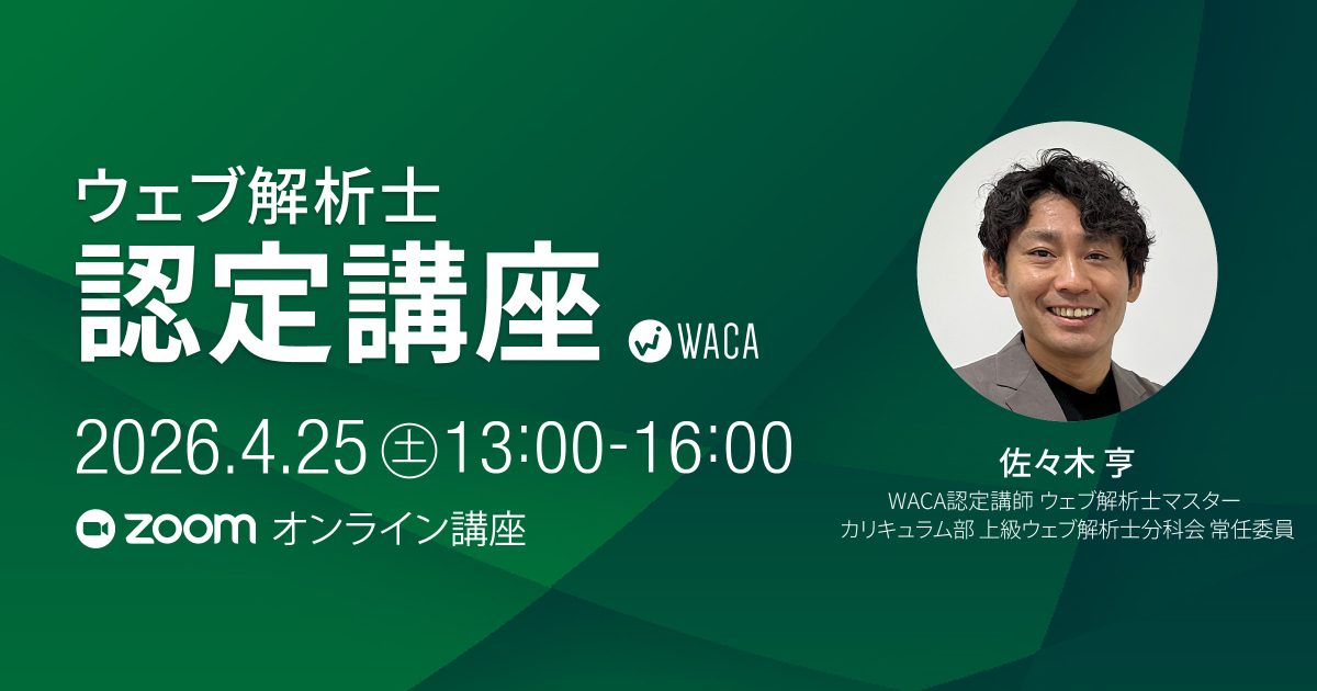 【WACA主催】ウェブ解析士認定講座(オンライン講座)【4月25日(土)】