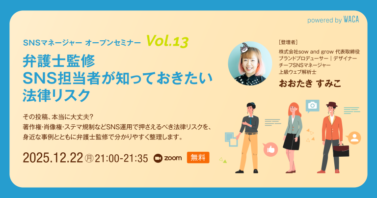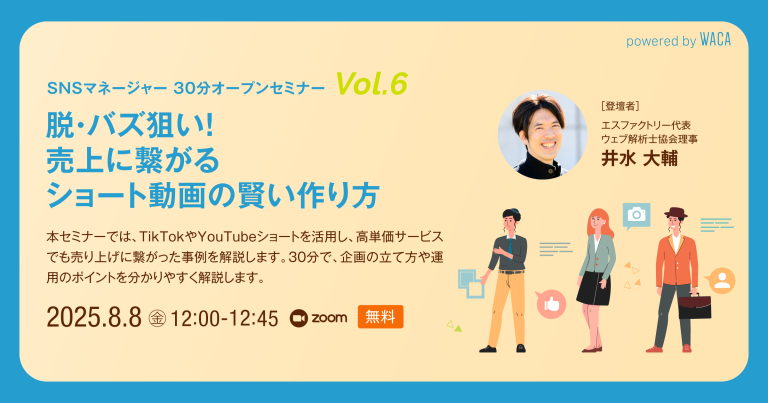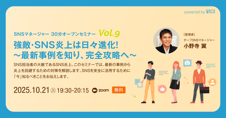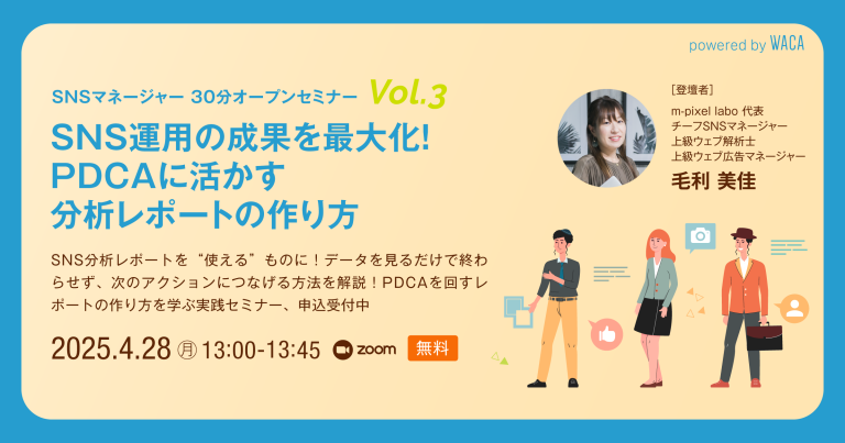 WACAのSNSマネージャー養成講座定例セッションは、SNSの現場で活躍するエキスパート講師が、最新トレンドから実務の本質までをわかりやすく解説するオンラインセミナーです。